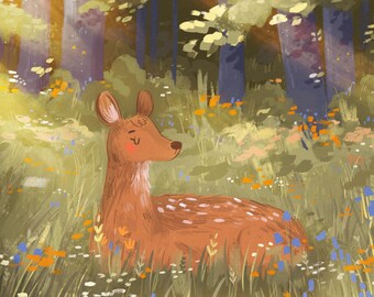 Deer Art Print. Modern Deer Wall Art. Deer Nursery Wall Art. Woodland Nursery Decor.