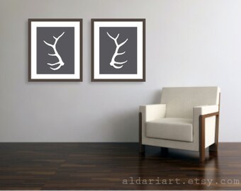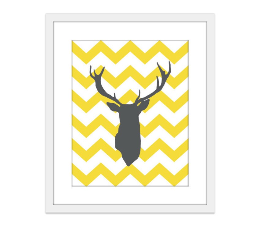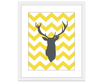Deer Art Print - Deer Antlers Wall Art - Yellow Chevron Print - Woodland Decor - custom color art