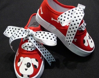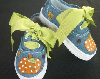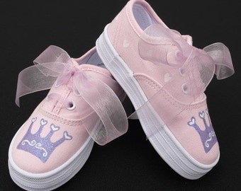 Materials: quality canvas shoes, non toxic acrylic paints, grosgrain ribbon