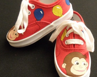 Sale-Hand Painted Girl's Monkey Lace Up Shoes