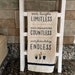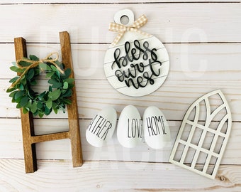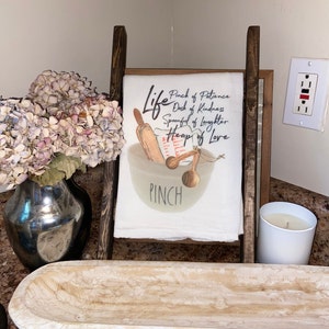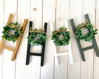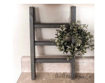 Decorate your home with a cute small wooden ladder. These little guys can hold kitchen towels, burp cloths, hand towels in a bathroom, etc. They are a great touch for your farmhouse decor!