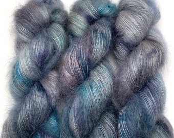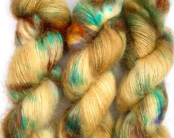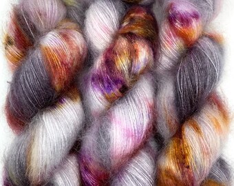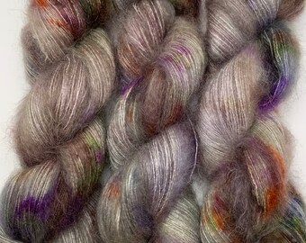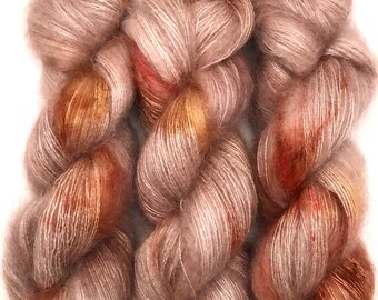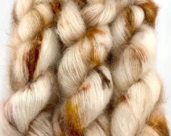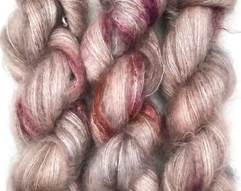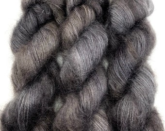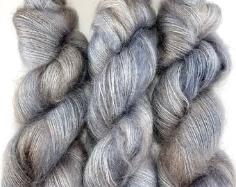 Hand Dyed Yarn "Silverbirchenstick" Grey Beige Greige Brown Black Kid Mohair Silk Laceweight 465yds 50g