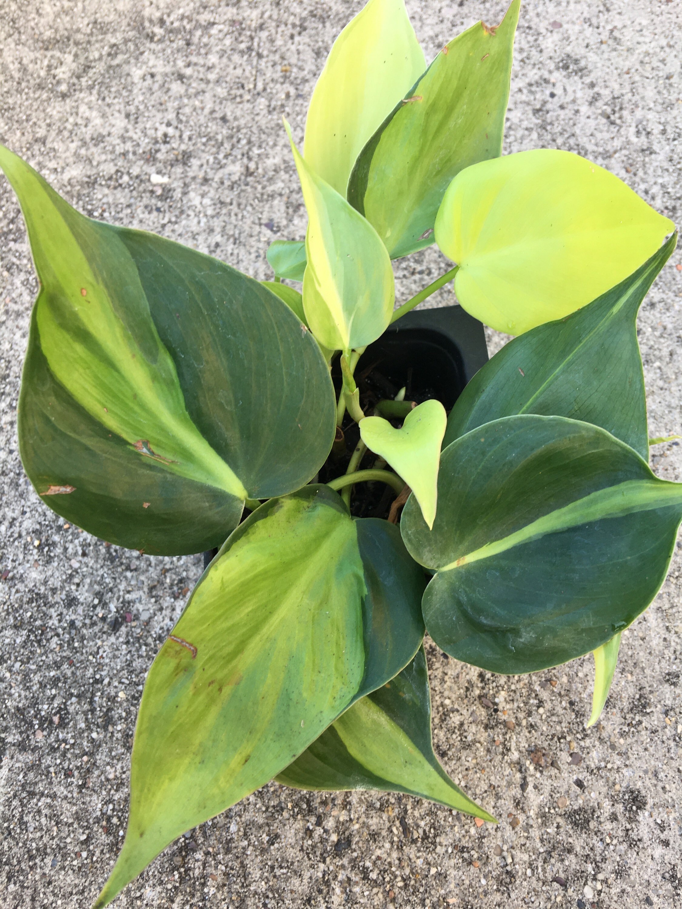 This is Brasil philodendron house plant. In the sun photo will make the plant look more yellow. In the shade the plant will be more green. It can’t be in direct sunlight and it will get burn and some will die ok.