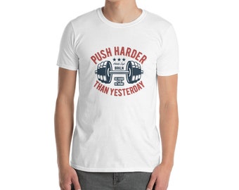 Push Harder Than Yesterday Short-Sleeve Unisex T-Shirt, Custom t shirts, Printed t shirts, Personalized, Grandpa gift for men, Mens T-shirt