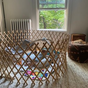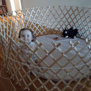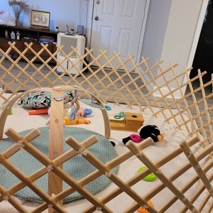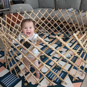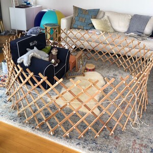 We love our playpen! I spent a lot of time looking for something that wasn’t plastic, and stumbled upon this one. We got the larger size, and I’m very glad we did. It’s easy to adjust the size, so it’s nice to have the option to go small or large. We mostly use ours in the kitchen and keep it around 1.5m. It’s nice that it can be round or oval, depending on the space. We find it easiest to do the rope while standing in the pen. Fabiola was so helpful with our questions, and shipping was very fast! We received it 9 days after ordering, and we live in Wisconsin. I expected it to take 2-3 weeks at least. We are working from home for covid, so having this pen is so helpful. Our daughter is 11 months old and plays well independently, but this keeps her from climbing to stand with chairs and cabinets and the dirty trash can!