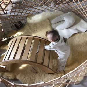 Made with pine wood, perfectly well sanded and untreated (for the safety of children as it is reliable if they suck or bite the wood), they are made with 100% cotton fabric for the wall and the ceiling is made of French Tergal, cotton rope and cotton tensioning rope with ornament.