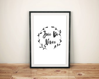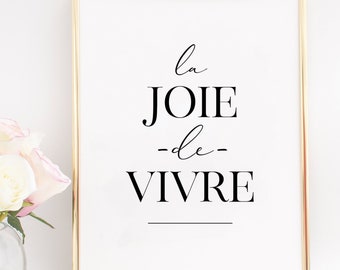 INSTANT DOWNLOAD Printable Typography Print, joie de vivre, Home and Wall Decor