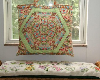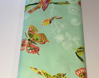 Pink teal green floral Joie de Vivre makeup bag / flat zipper pouch/ cosmetic bag