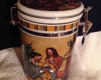 Coffee Canister/Storage Jar - Joie de Vivre by Y Sylvie Bourbonnierre - Café Series