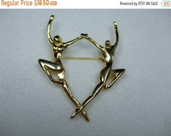 50% Off Sale Vintage Large Goldtone Dancers figural brooch-A Joie Vivre 1970's