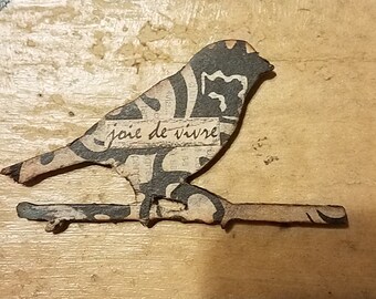 Joie de Vivre, Joy of Life French Metal Bird Magnet in Black and Ivory