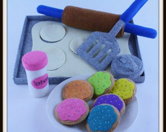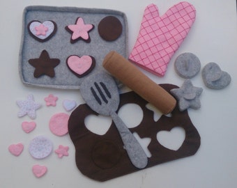 Toys Food Felt felt food cookies rolling pin cookie cutter Waldorf kids children pretend food play food pink baking set hand stitched interactive play