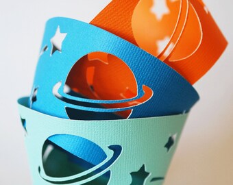 These cupcake wrappers are just too cute and were perfect for my space themed cupcakes! They're beautifully cut and fit cupcakes perfectly. They also shipped very quickly!