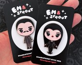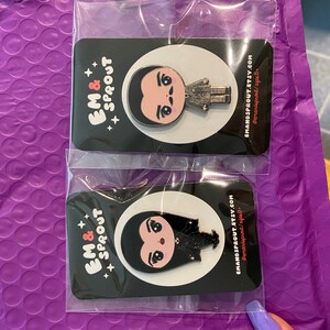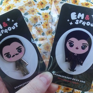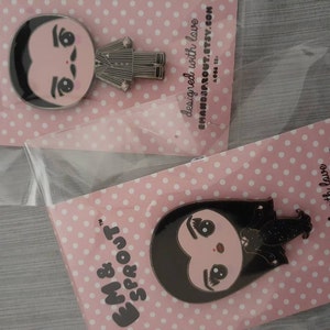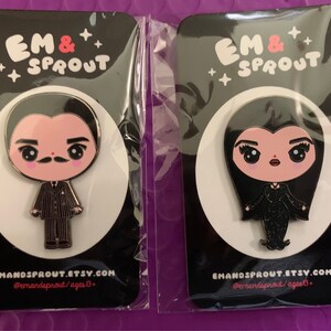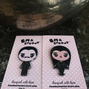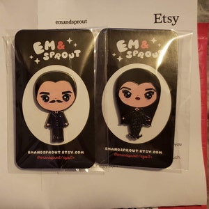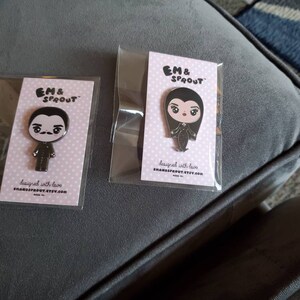 This artist makes THE cutest pins! I've made multiple purchases from this shop. I'm a big fan of the Addams Family, and I've been looking for a pin of Gomez and Morticia. When I saw this pin, I knew it was the one. Absolutely fabulous! I really love the cutesy style. The seller is wonderful; I follow her on Instagram. As always, the quality is excellent, and the delivery was quick.