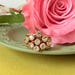 Clear rhinestones surrounding ruby red stone in the center add sparkle and color.