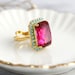 Red Ruby Ring, Christmas Wedding Jewelry, Cocktail Crystal Ring, Adjustable Square Valentine's Gift, Siam, SR90