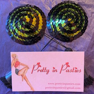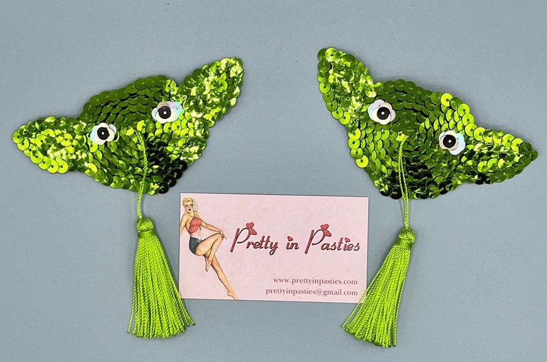 Sparkly lime green pasties available with or without tassels.