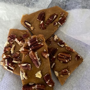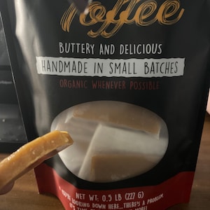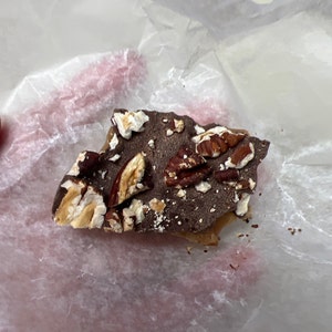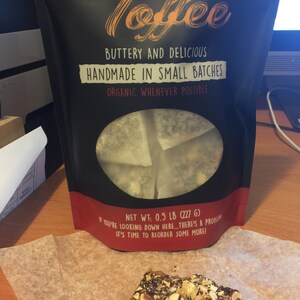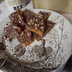 5 out of 5 starsMy Second purchase of this luscious buttery toffee that is unlike anything you have ever tasted! Just magnificent! You wont break your teeth biting into it, they have mastered it! I support small businesses like these excellent women that go out of their way for their customers, they ship fast, their packaging is super along with a beautiful note. They even sent me a sample. Thank you ladies, I will be back for more Pecan toffee! Your the best!