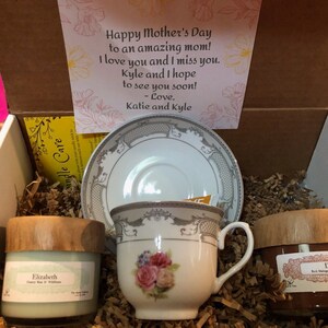 **PLEASE NOTE: We have updated this listing with teacup design options. Both designs pictured are available for you to choose from. The cup with Charlotte & Sidney is called "English Rose" and the cup featured with all others is called "Vintage Bouquet"