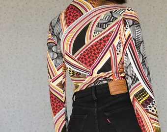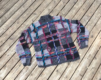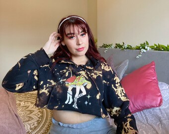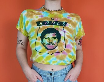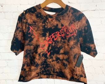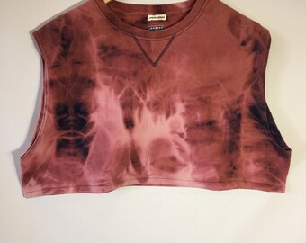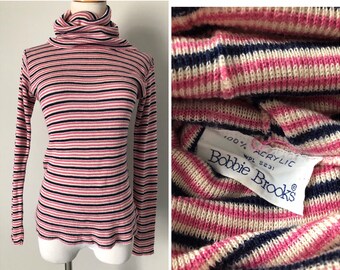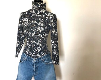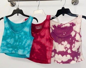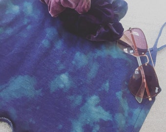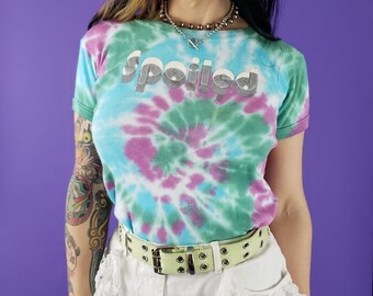 90s Vintage Tie Dye Turtleneck Small Medium - Teal Pink Cotton Bleached Cropped Tee - Hand Dyed Long Sleeve Turquoise Bleach T-shirt