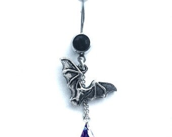 Silver Vamp bat navel bar