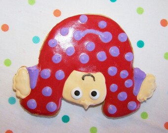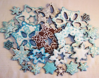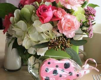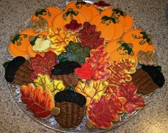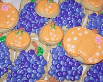 You'll get 2 dozen appx. one inch wide, 1/4 inch thick cookies in your choice of colors and design(s) wrapped in a clear cello bag.