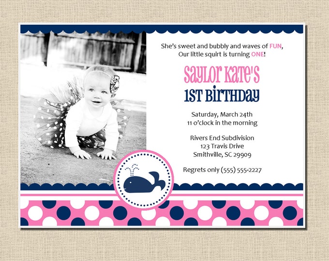 Preppy Whale Party Collection: Printable Photo 5x7 Invitation in Color CHOICE