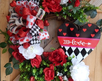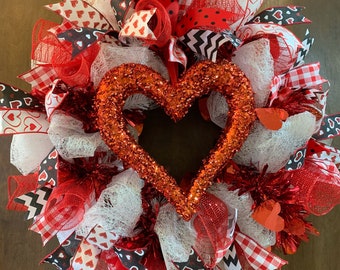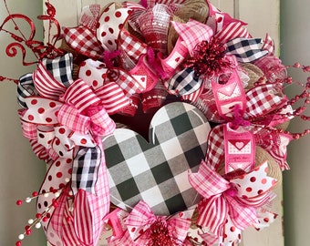 Valentine's Day wreath, valentine wreath, pink and red wreath, xoxo wreath