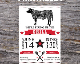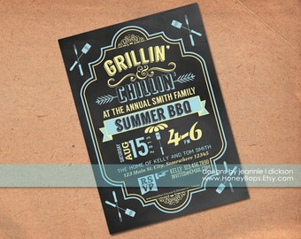 Paper Goods Cards Invitation grill beer barbeque cookout party invitation bbq invitation picnic invitation birthday party hostess gift party invite graduation bbq invitation