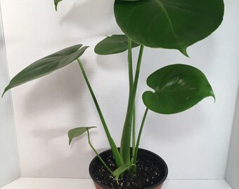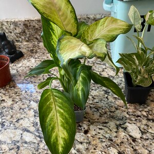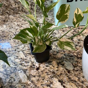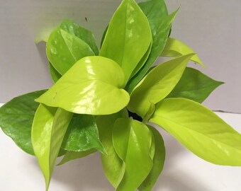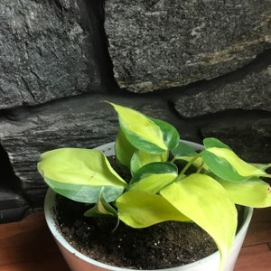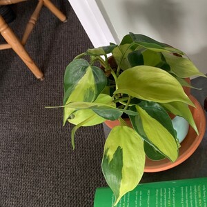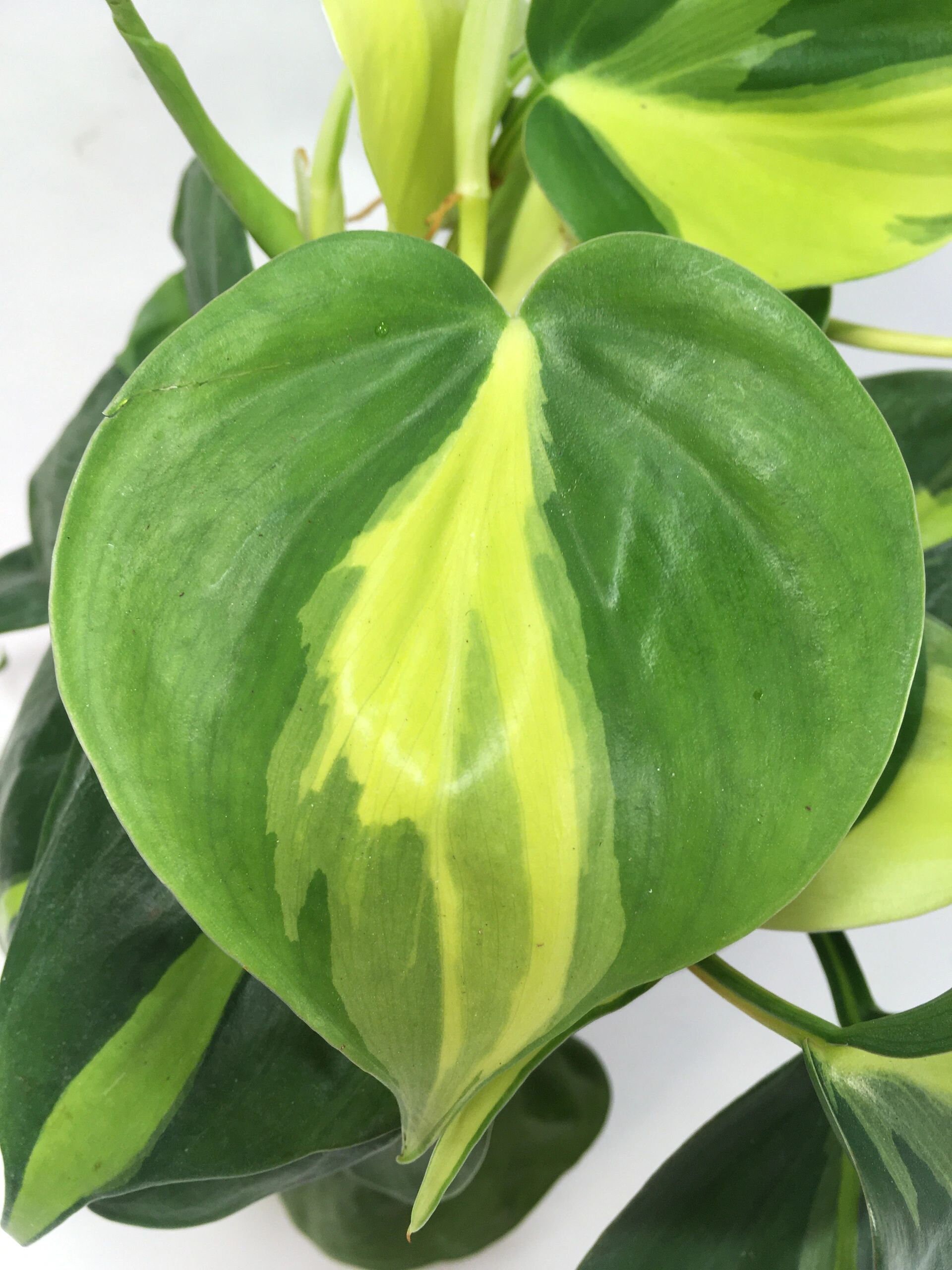 Philodendron Brasil - Very full plant! This is a very showy foliage house plant. Its trailing or climbing stems carry heart-shaped leaves with striking markings. Each glossy, dark-green leaf is splashed with cream, yellow, and pale green. There is no pattern to the variegation and each leaf is unique. RARE. Fully rooted in a 3” pot. Ships potted.