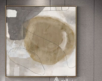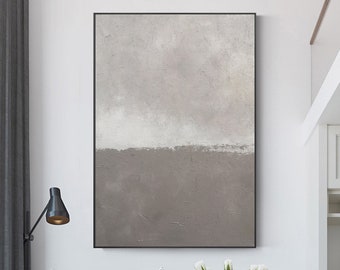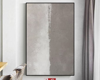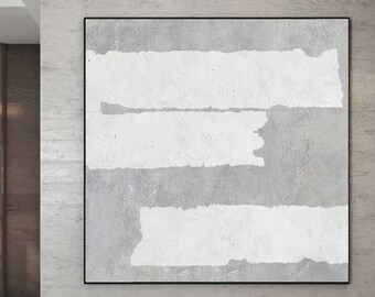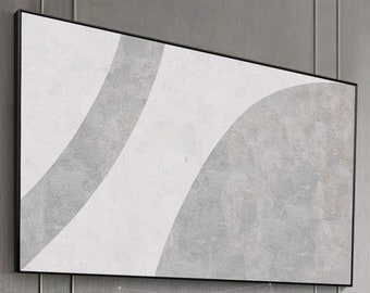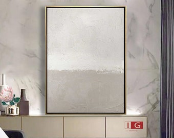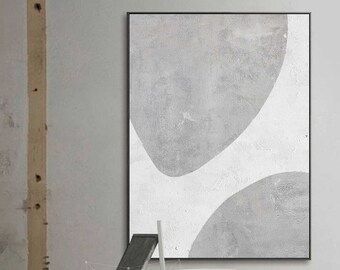 Oversized Modern White And Gray Abstract Painting Decor Wall Art Neutral Interior Design On Living Room Decoration White Canvas Oil Abstract