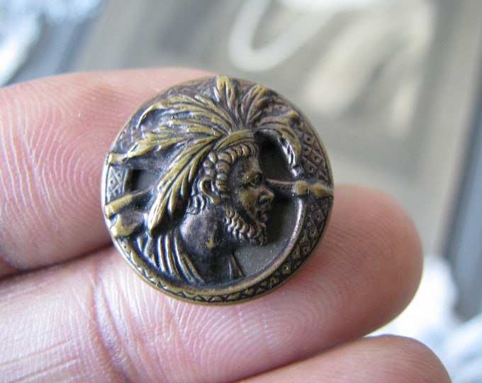 Antique Picture Button, Man Friday Button, Robinson Crusoe Button, Antique Character Button, Antique Brass Button