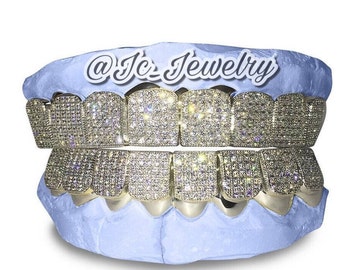 8 Top & 8 Bottom 10k 14k Gold Grillz With Cz Blocks