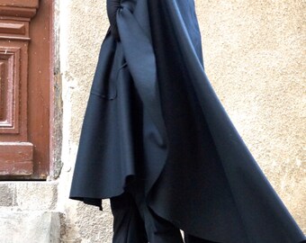 NEW Winter Cape Coat/Kasha Asymmetric Extravagant Hooded Coat /Wool/Cashmere Blend/ Double Zipper/Large Side Pockets Coat by AAKASHA A07335