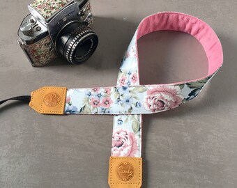 DSLR camera strap,Pink Pastel flower Camera Strap, leather camera Strap Gift for her #141