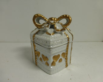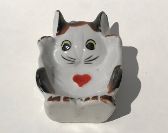 Vintage White Ceramic Kitty Cat Candy Dish Trinket Box