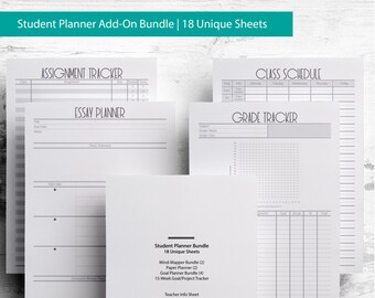 Ultimate Student Planner Add-On Bundle, Printable, Schedule, Goal Planners, Financials, Grade Tracker, Assignment Tracker, Meal, Mind Mapper