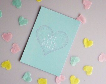 A6 map Let Love rule/postcard, greeting card, stationery, lettering, quote, love, pastel, Heart, Valentine