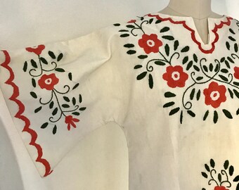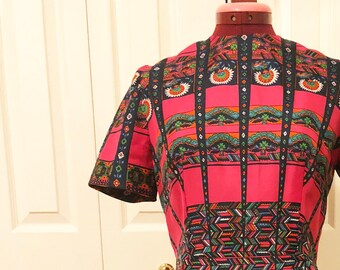 Vintage 70's Cotton Embroidered Bohemium Dress l M Love Birds