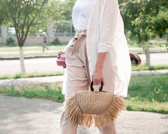 This is a raffia waist bag crochet PDF pattern with complete and detailed video-description of the whole belt bag creating process. Skill level - easy. It will take 1-2 days to create it. The size of the bag will depend on the thickness of the raffia yarn and the density of your crocheting.