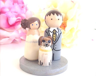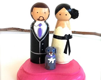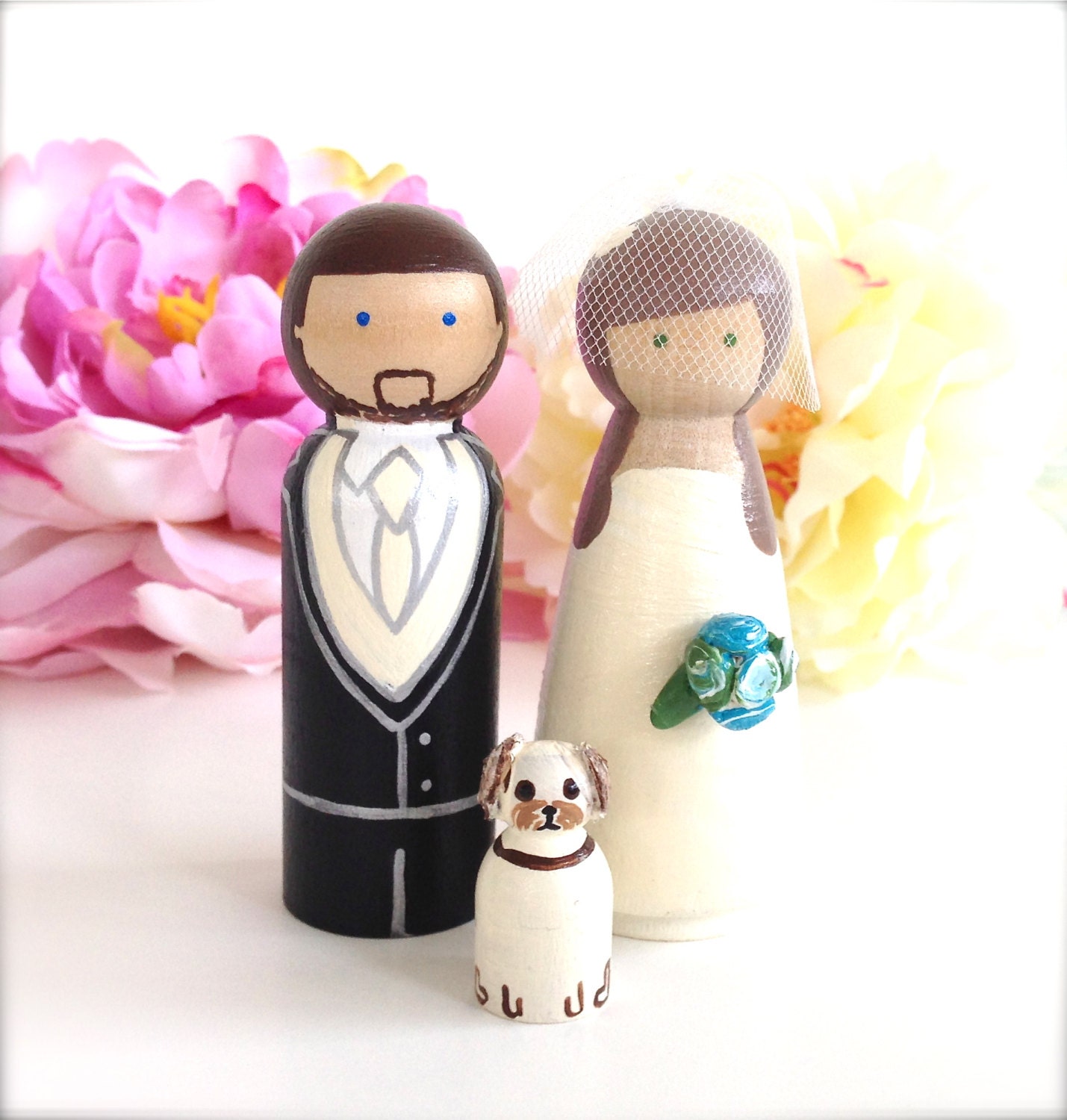 Wedding Cake Topper CUSTOM CAKE TOPPER with 1 Pet Wood Peg Dolls Wedding Cake Toppers Custom Wedding Cake Toppers with Pet People Toppers
