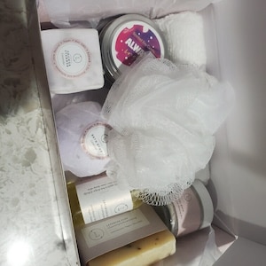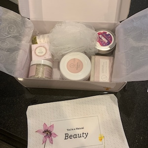 My mom loved this for Mother’s Day! First of all, opening the box you are greeted with the most amazing spa like smell. It’s overwhelming but in the best way possible! Refreshing and relaxing. The personalized name on the front was the perfect touch. And it came with a blank card to write a personalized message.