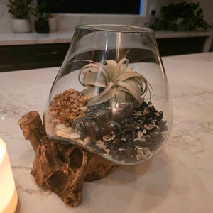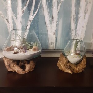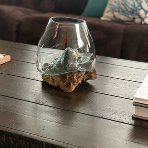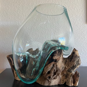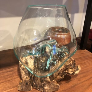 5 out of 5 starsI absolutely love this one-of-a-kind terrarium glass and base. The size is exactly what I was hoping for. I use mine for a living "fern/moss" terrarium and wanted something special for it -once I saw these I was hooked and couldn't look at anything else. At first figuring out my soil depths for the shallower portions of the bowl were tricky, but I figured it out and I couldn't be happier. The glass is thick and sturdy, the wood base also feels hefty and solid. There is no wiggle in the fit or worry of either breaking. I keep this one at work and people love to stop and admire the plants and container. This is truly art, and anything you use it for will look amazing!