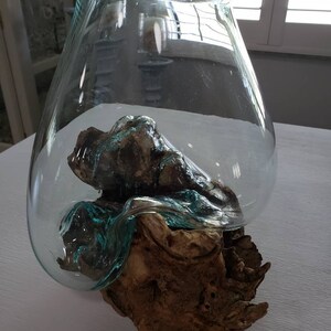 Molten Glass Vessel on Gamal Wood Base