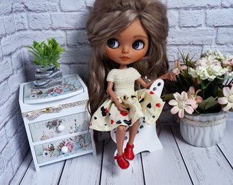 This is 12 inch doll dress, made from fabric. Blythe Vintage Dress is very stylish. Each Doll will be perfect in this Blythe Doll Clothes. This Blythe Dress is perfect for your Custom Blythe Doll or Pullip Doll.