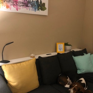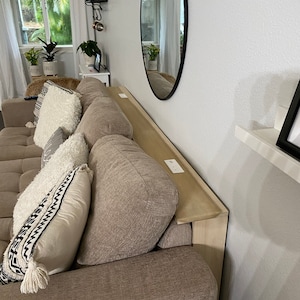 Instructions on how to make your very own behind the couch console table. These plans will detail my process and materials I used in making a custom console table to fit behind my couch. These plans can guide you in your process to build your own. While everyone's couches are different, the concept is the same. The only thing you need to change are the height and width according to your needs! Plans are easy to follow and easy to read with images, labels, and text.