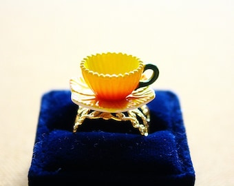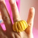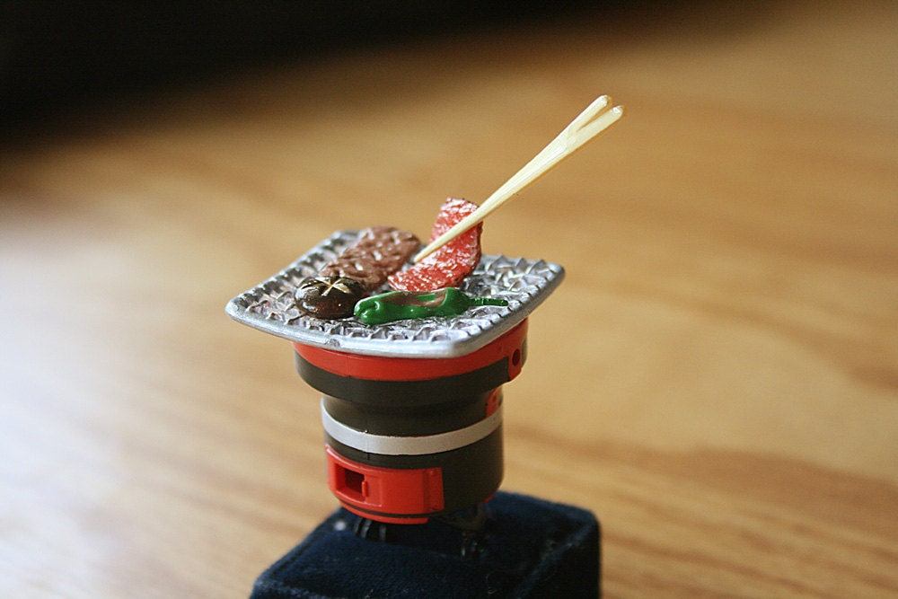 The object is measured about 6cm tall with the chopstick, and it's attached to the black painted metal filigree adjustable ring. This raw galbi is on the grill along with jalapeno and mushroom! (of course it's not real food, please don't eat it) How cool is this