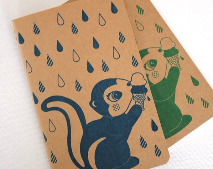 SALE - Ice-cream eating squirrel - Original Gocco print on Moleskin notebook