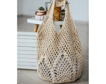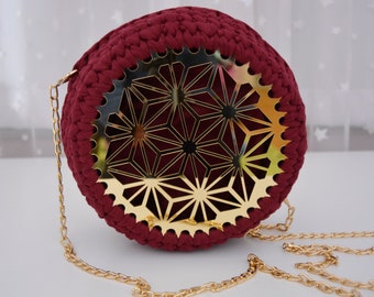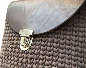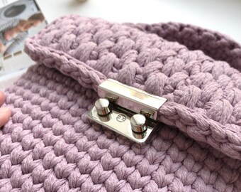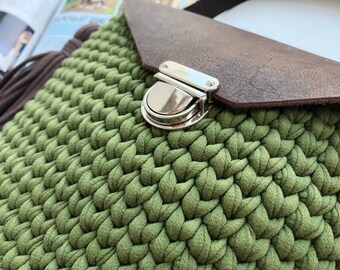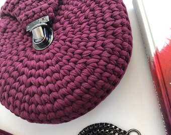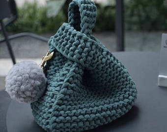 It is made by me by hand from knitted yarn, a suitable yarn for bags, which is very durable and easy to clean, and has 1 silver chain strap length of 120 cm (47.24 “).