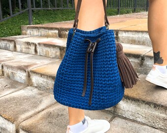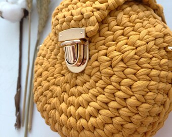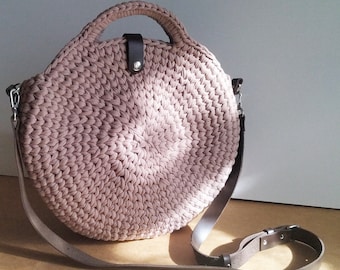 This bag is a round-shaped knitted bag with a hand-knitted lining, spacious, perfect for carrying all the necessary things during the day.